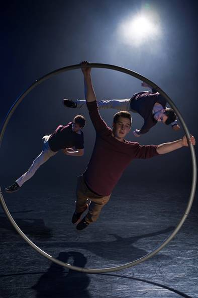 By the end of the evening there are more than a few times you will find yourself gasping at some of the positions they throw themselves into and the feats they perform. Handshakes become handstands as D’Amico and Gift perform a series of clinches and grasps. Meanwhile Wheeller captivates the audience balancing on the Cyr Wheel as he goes it alone… And before the end of the show they strip down to their underwear showing their fantastic... er... form by creating a human pyramid.